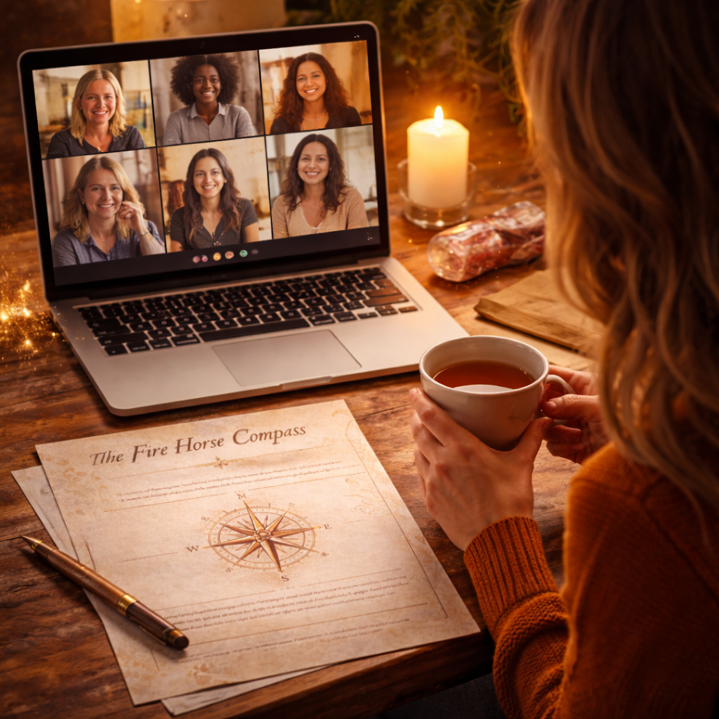 The Fire Horse Compass is a 90-minute online personal growth workshop for women navigating change who want to use this energy intentionally — choosing a direction that actually carries them forward, not back into familiar patterns.